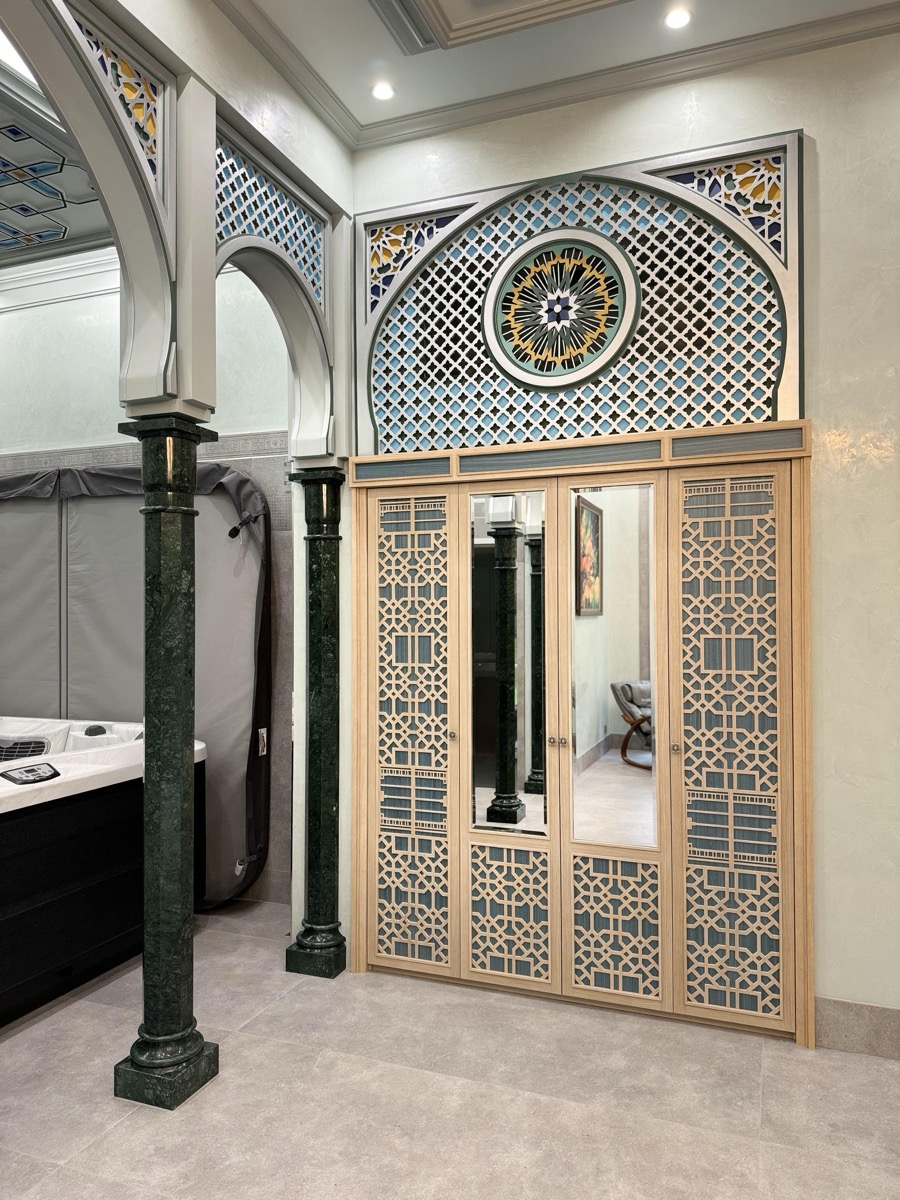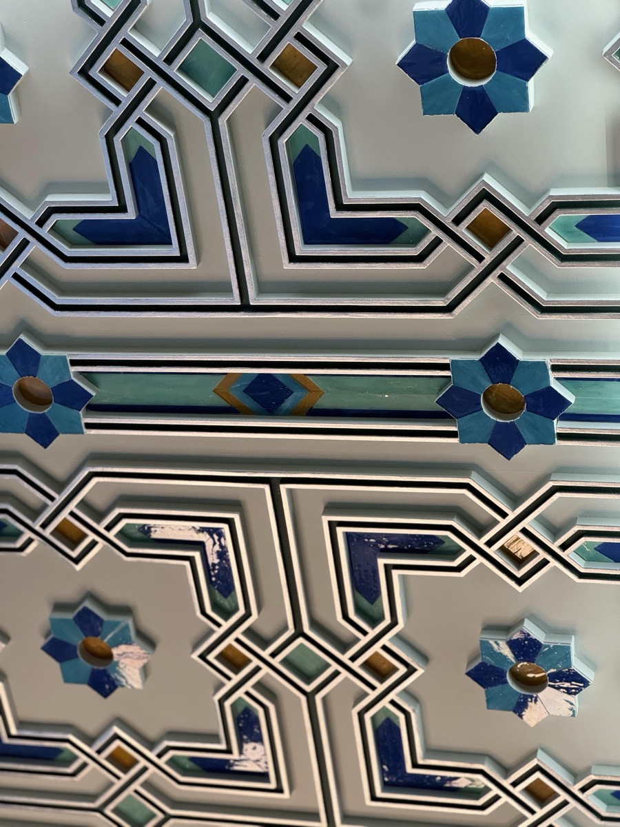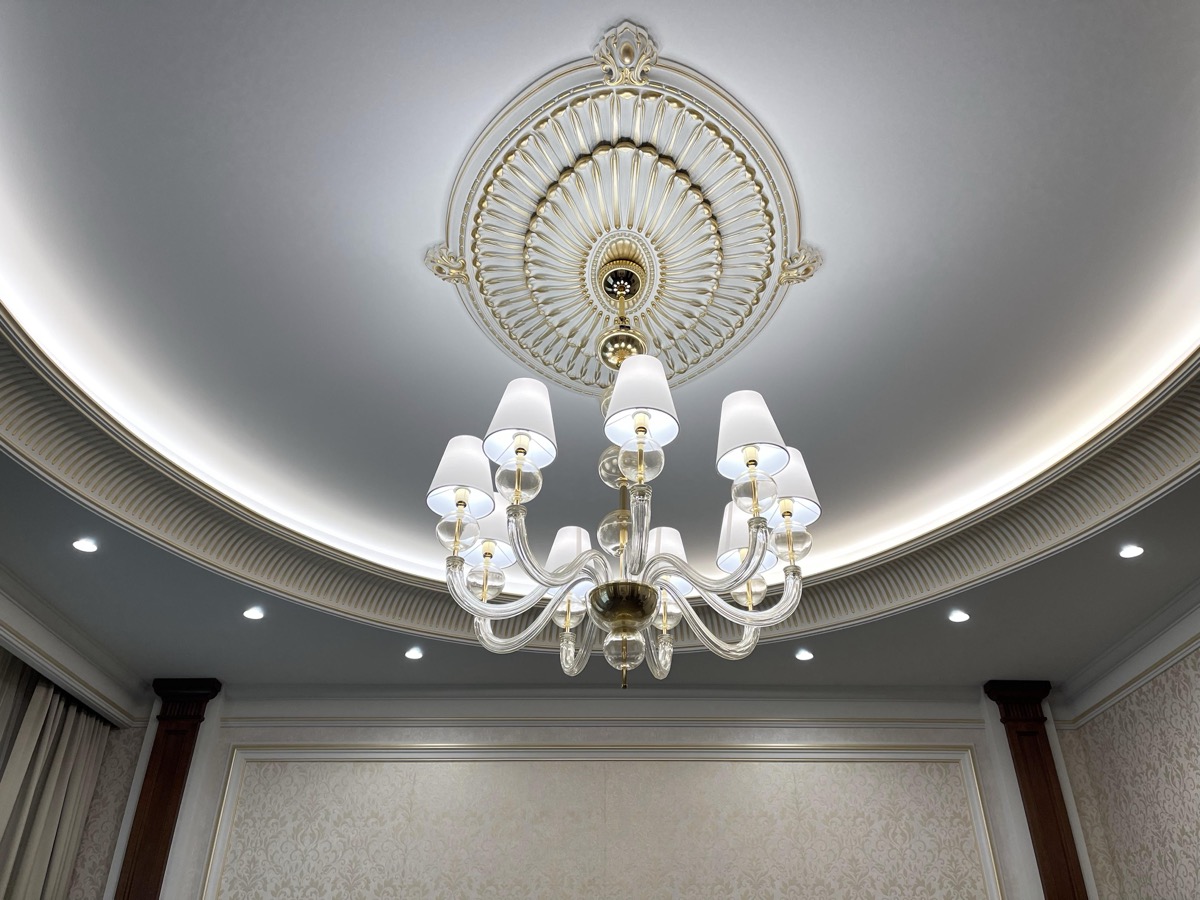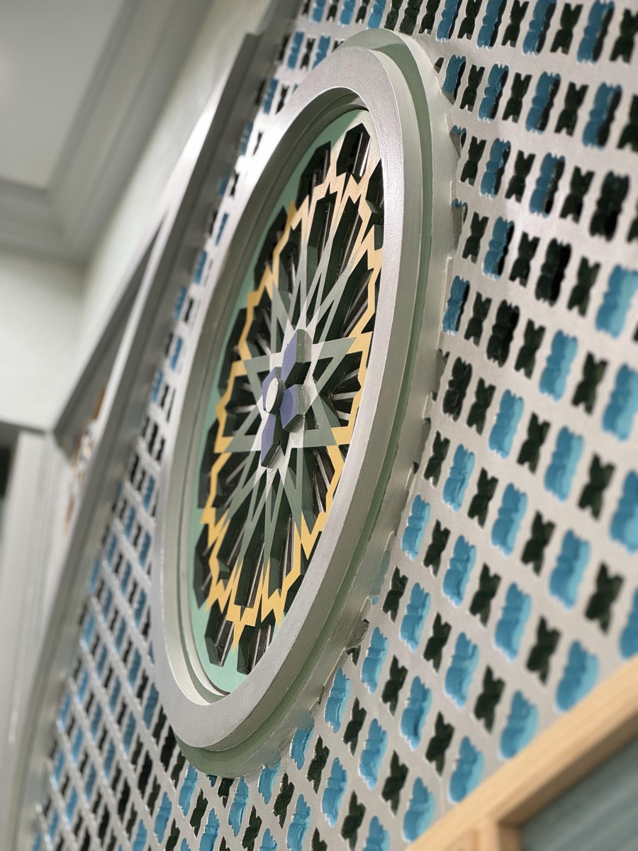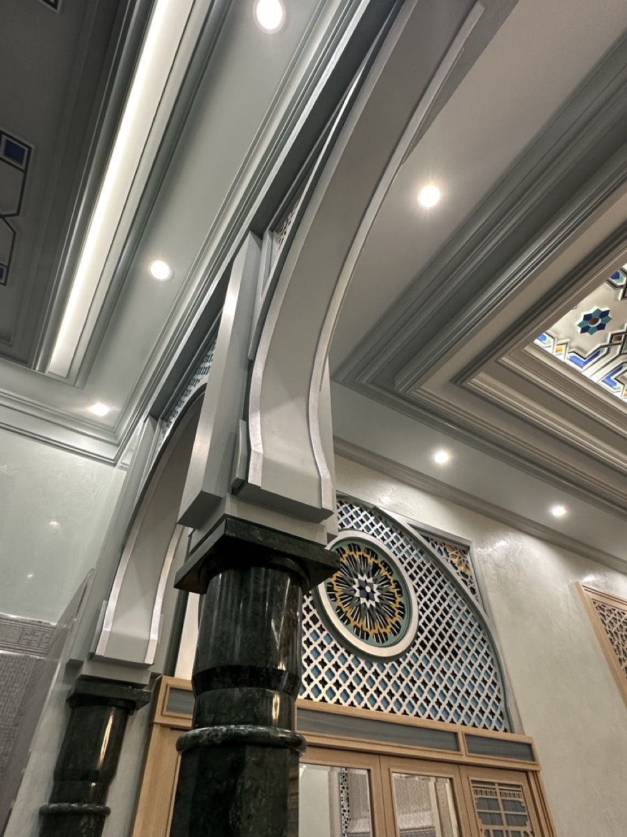 - потолок в спа-зоне выполнен в марокканском стиле, состоит из сочетающихся элементов лепнины и витражного стекла;