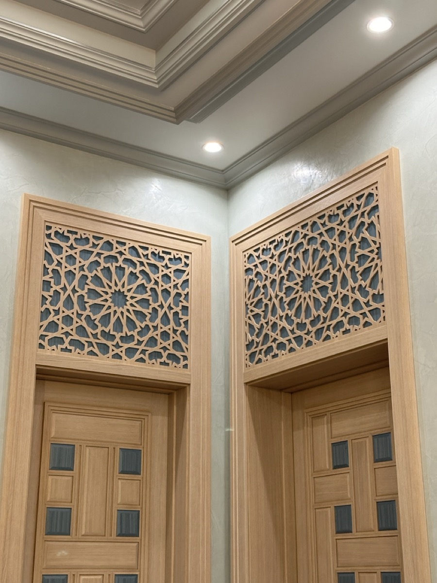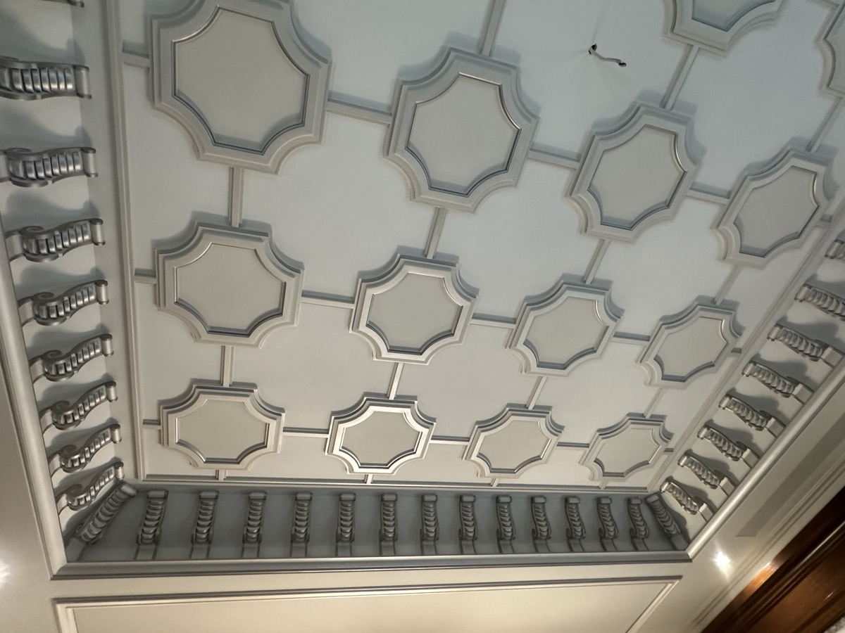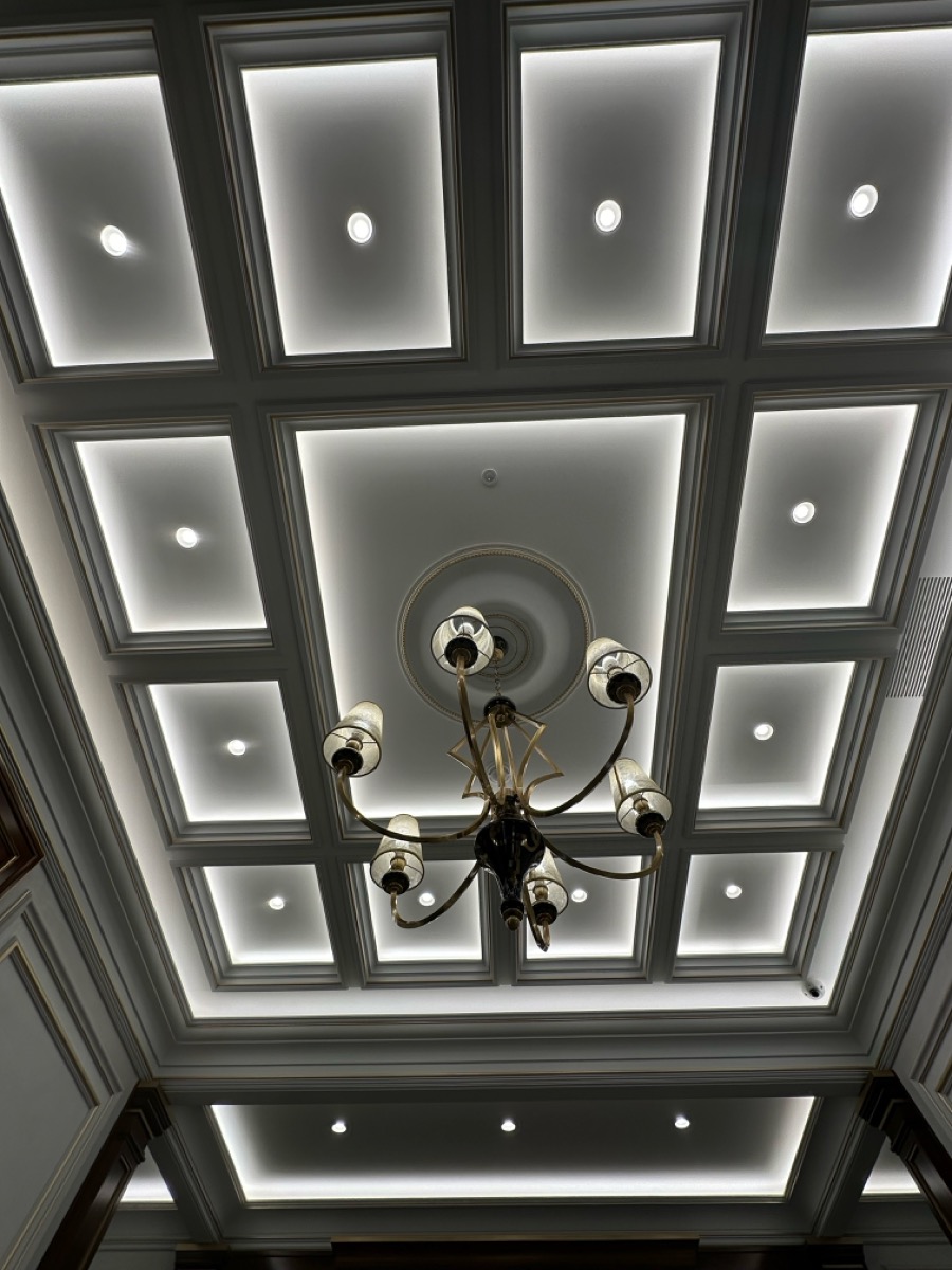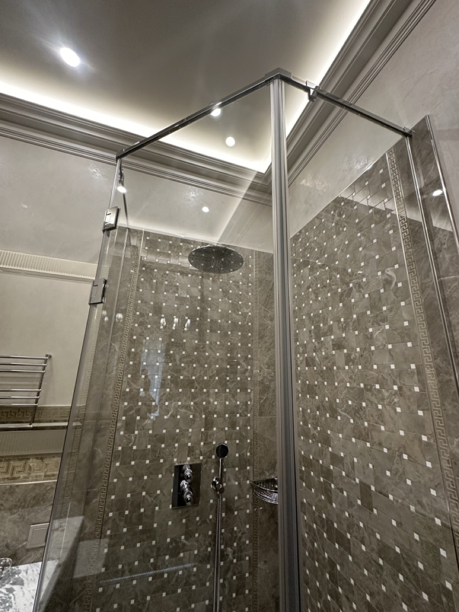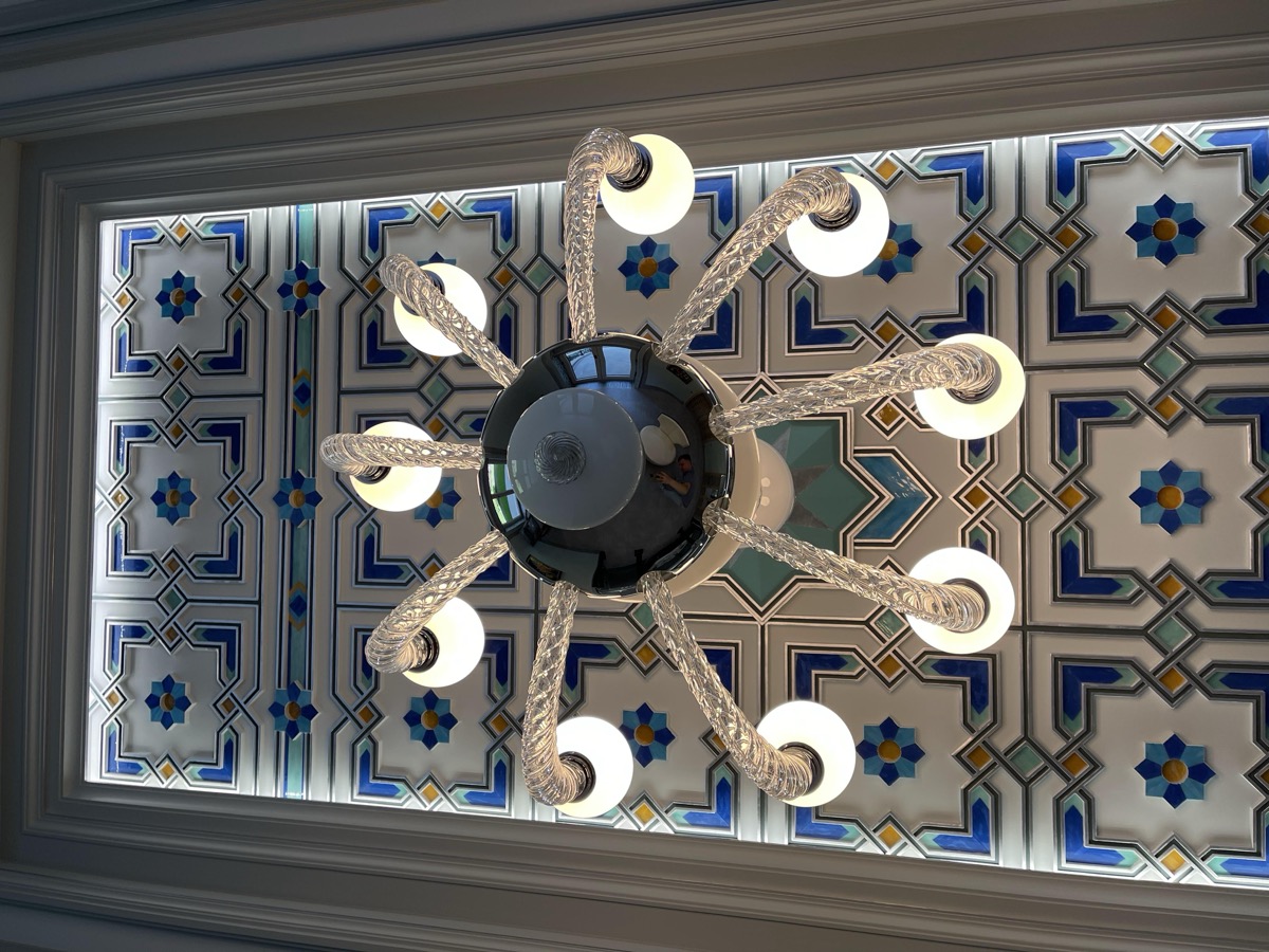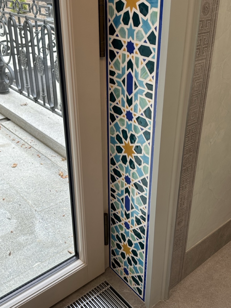 - потолок в спа-зоне выполнен в марокканском стиле, состоит из сочетающихся элементов лепнины и витражного стекла;