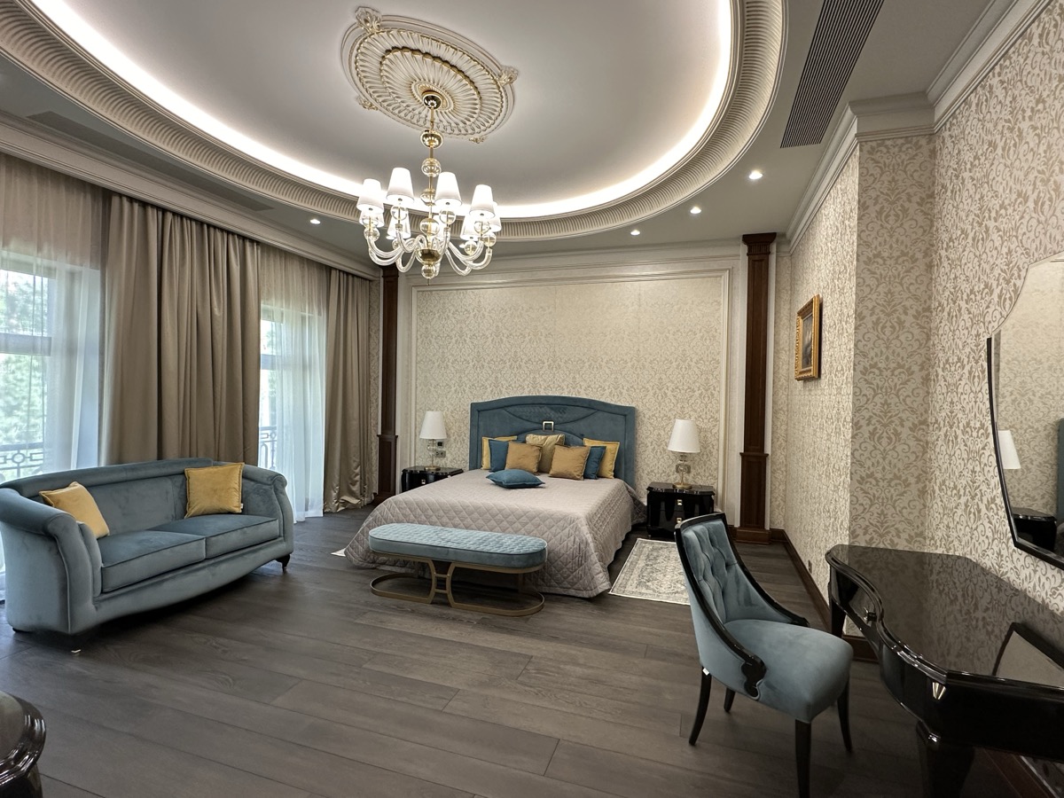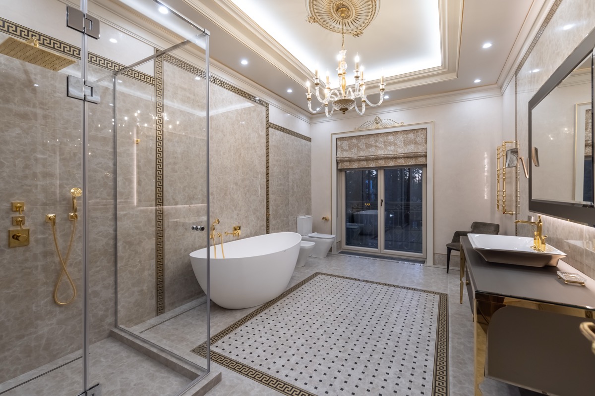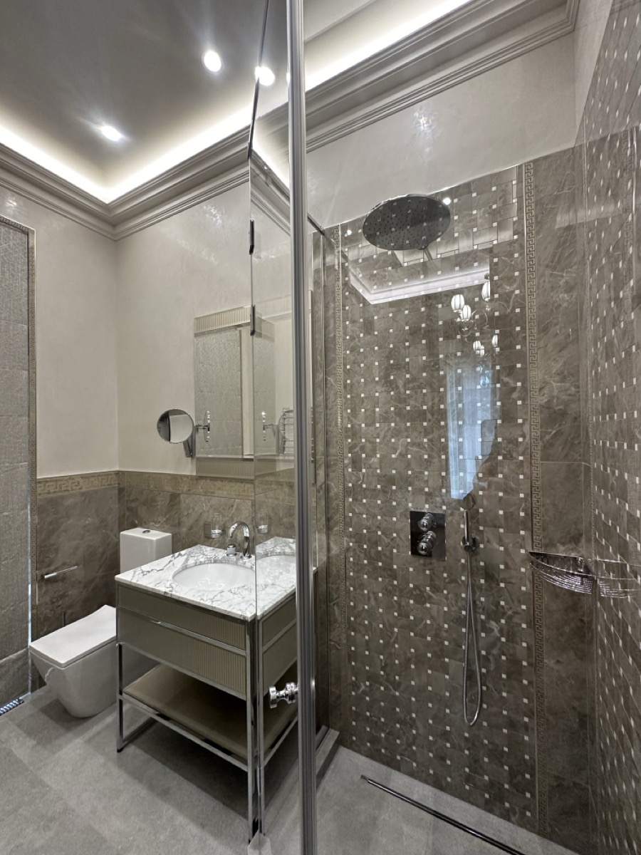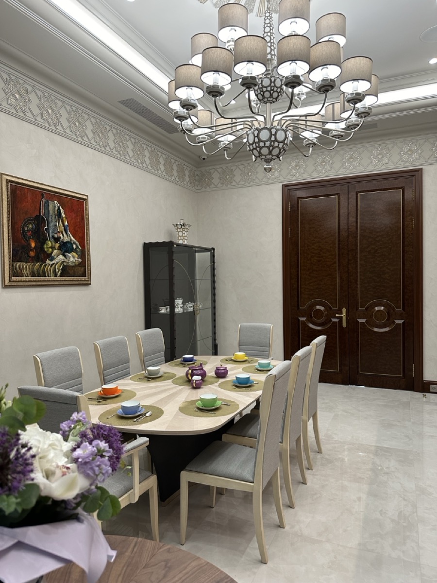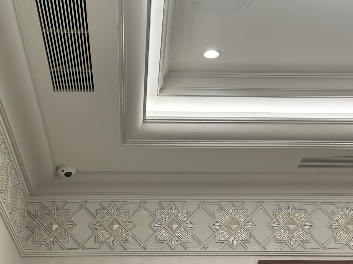 - потолок в спа-зоне выполнен в марокканском стиле, состоит из сочетающихся элементов лепнины и витражного стекла;
